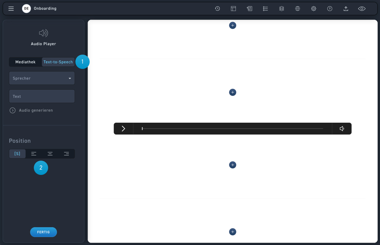Positioniere den Audio Player durch den Radio Button.
