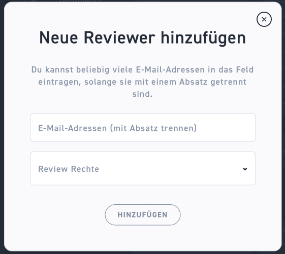 Klicke im Management Bereich in der Hauptnavigation auf Nutzer und scrolle herunter zu den Reviewern. Klicke auf Reviewer einladen und gib seine E-Mail Adresse ein. Dein Reviewer erhält eine automatische Registrierungs-E-Mail mit dem Link zum WBT.