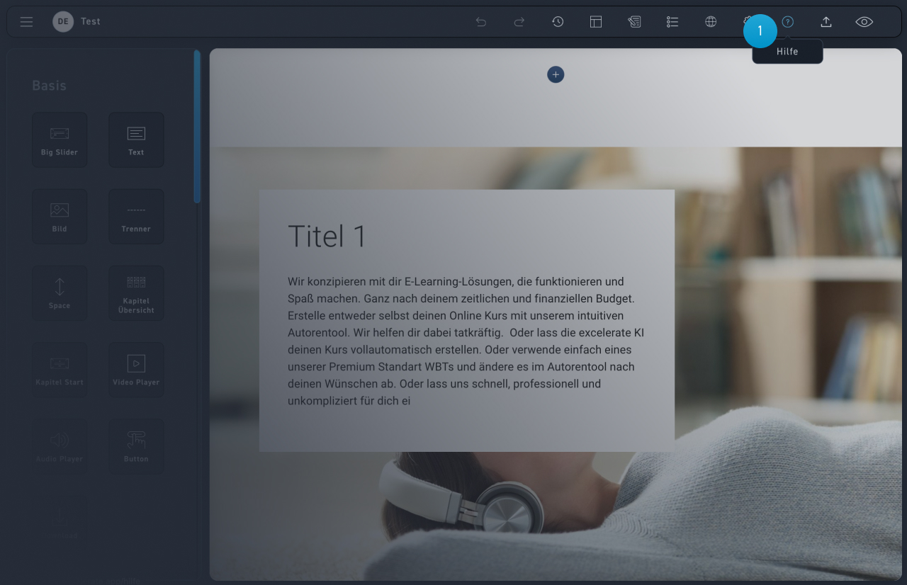 1. Klicke auf das Fragezeichen Symbol, das öffnet die Hilfeseite in einem neuen Tab in deinem Browser.