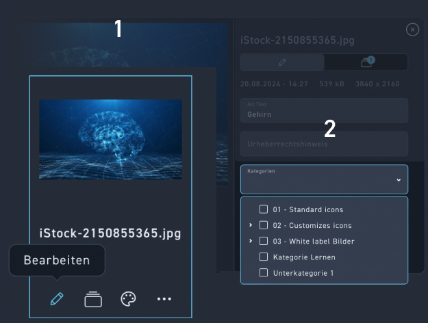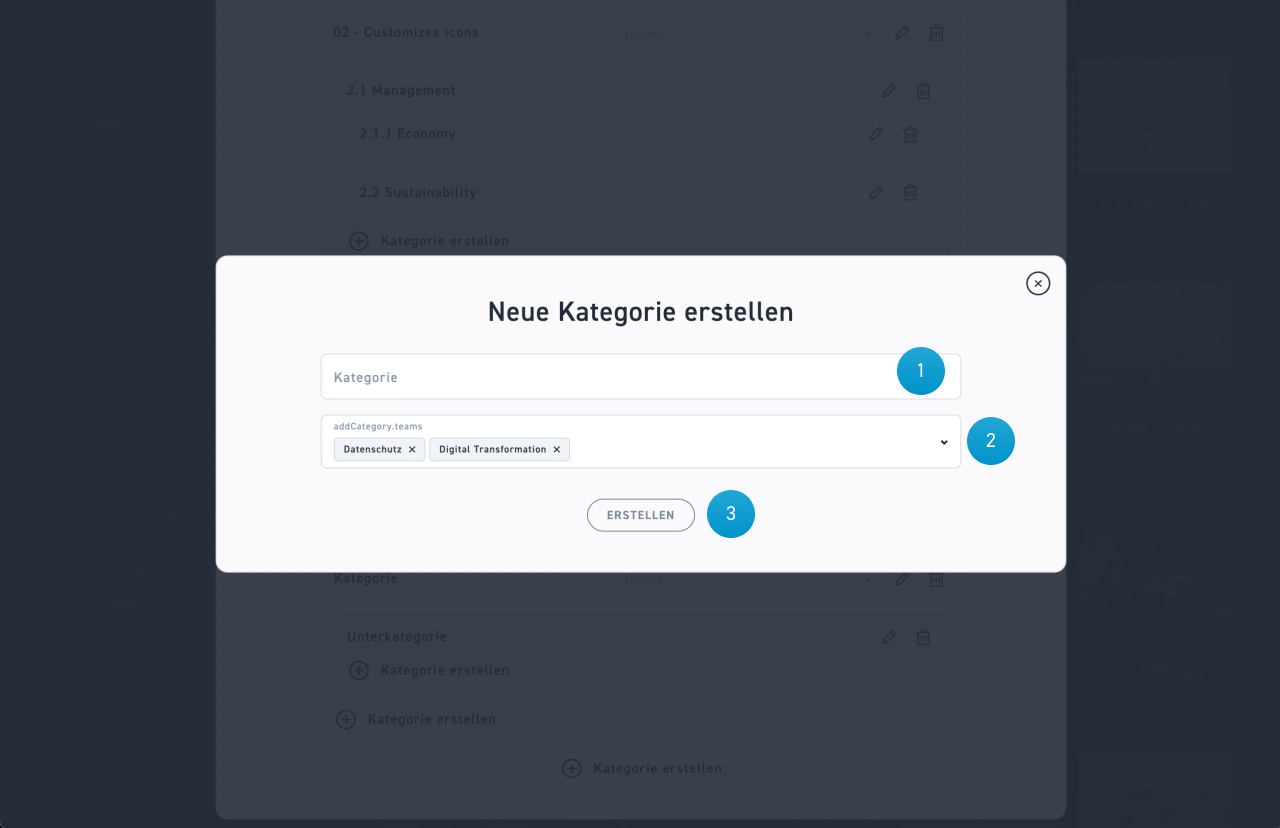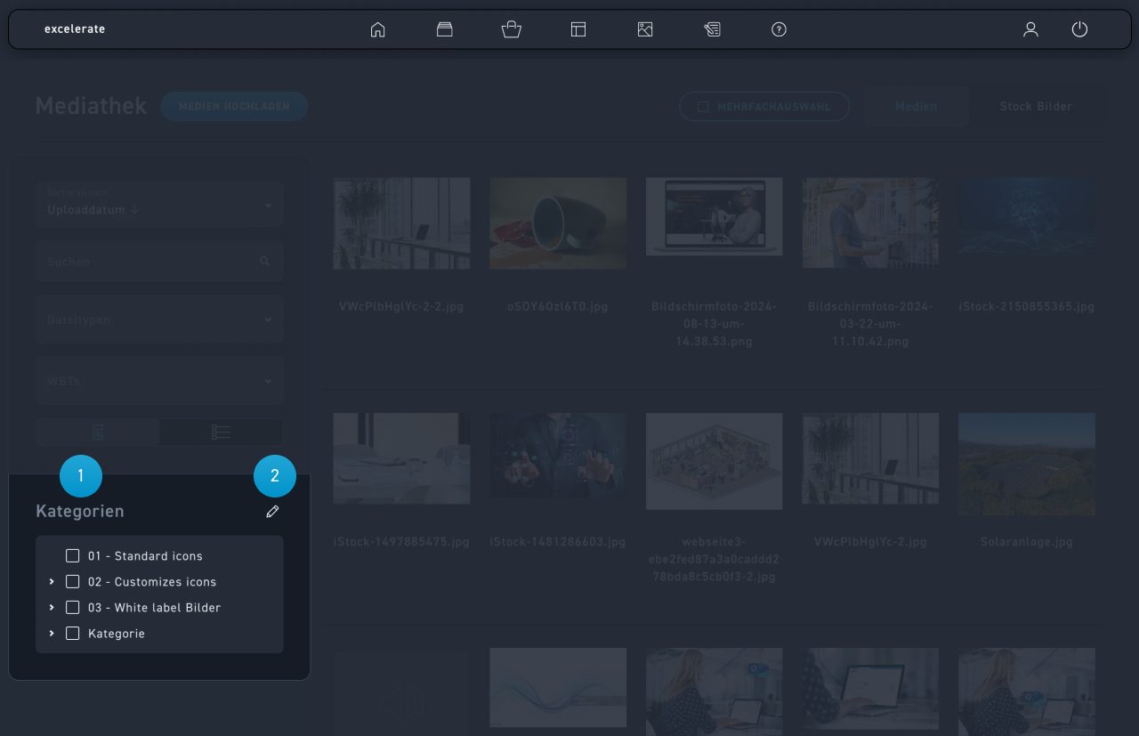 Kategorien bringen Übersicht und Ordnung in deine Listen. Du kannst alle Listen nach deinen Kategorien filtern. Ausserdem kannst du deine Kategorien Teams zuordnen. Damit kannst du Rechte verwalten , wer etwas sehen oder bearbeiten kann. Kategorien lassen sich in der WBT Liste, der Mediathek oder den Vorlagen erstellen und bearbeiten. Jeder Bereich hat ein eigenes Kategorien System.