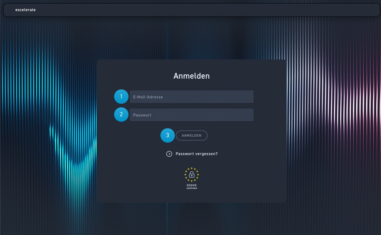 In excelerate hast du für den Login persönliche Zugangsdaten. Deine E-Mail-Adresse hast du bei der Registrierung verwendet, dein Passwort hast du individuell erstellt.