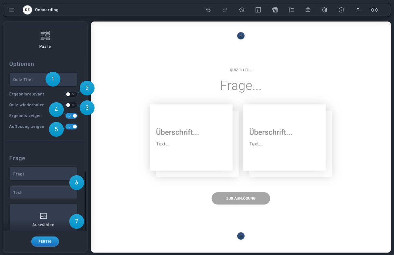 Lasse deine Nutzer die richtigen Paare finden und zuordnen. Ein Paar kann auch aus Text- als auch Bildkarten bestehen.