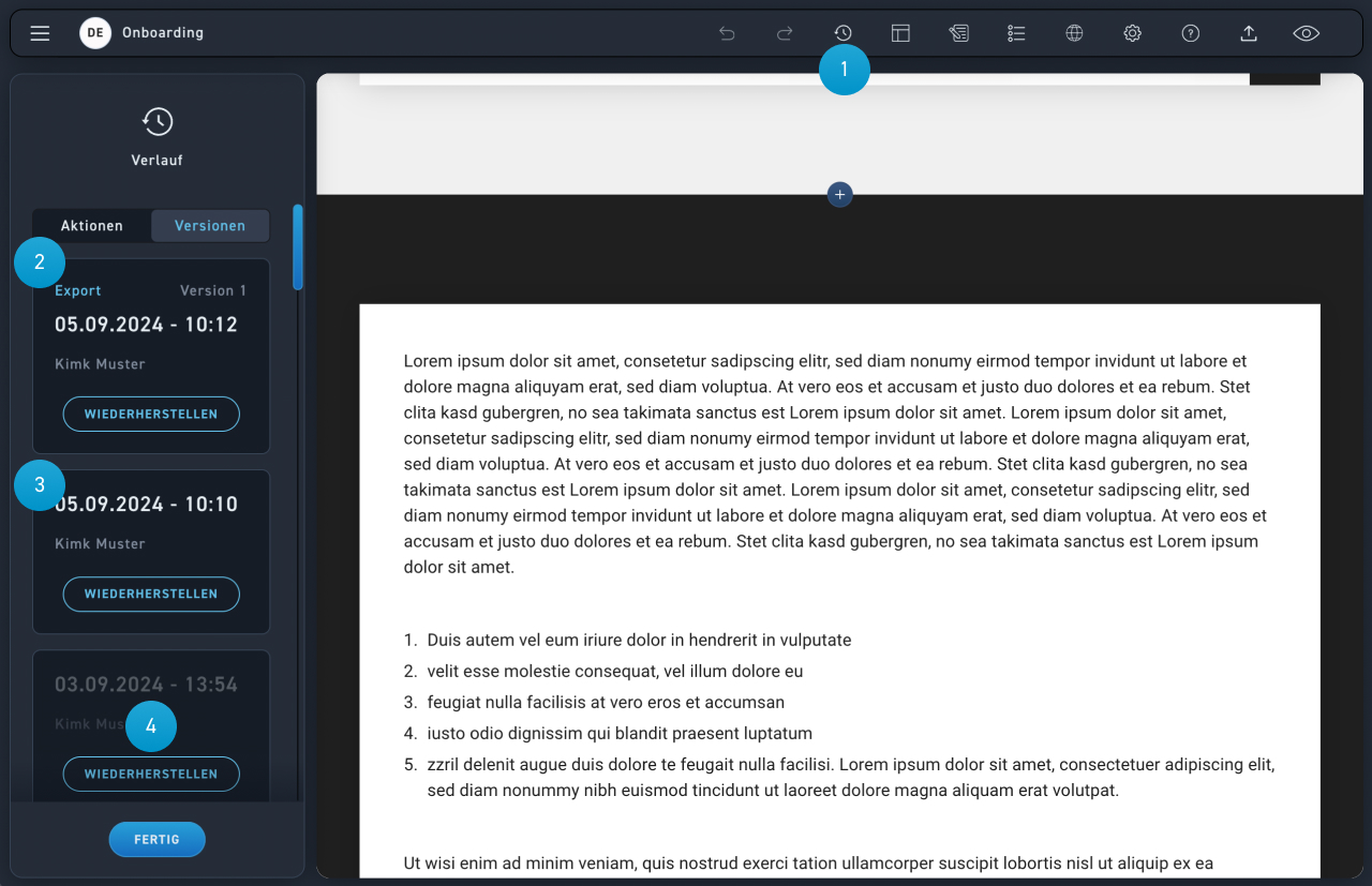 4. Klicke auf den Wiederherstellen Button, um zwischen den Versionen zu wechseln.
