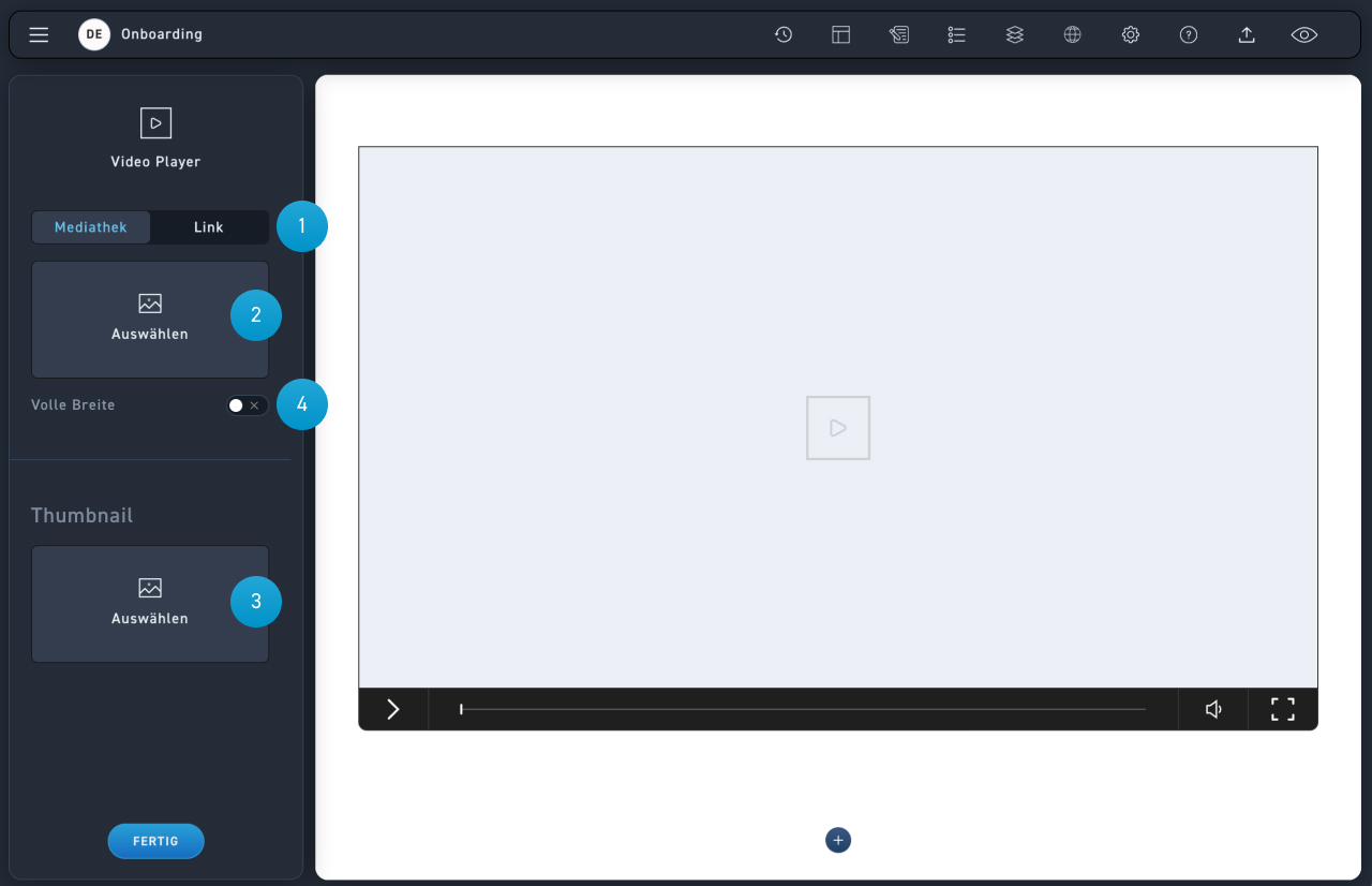 Du kannst auch Videos von Youtube oder Vimeo einbinden. Wähle dafür zuerst den Radio Button Link aus.