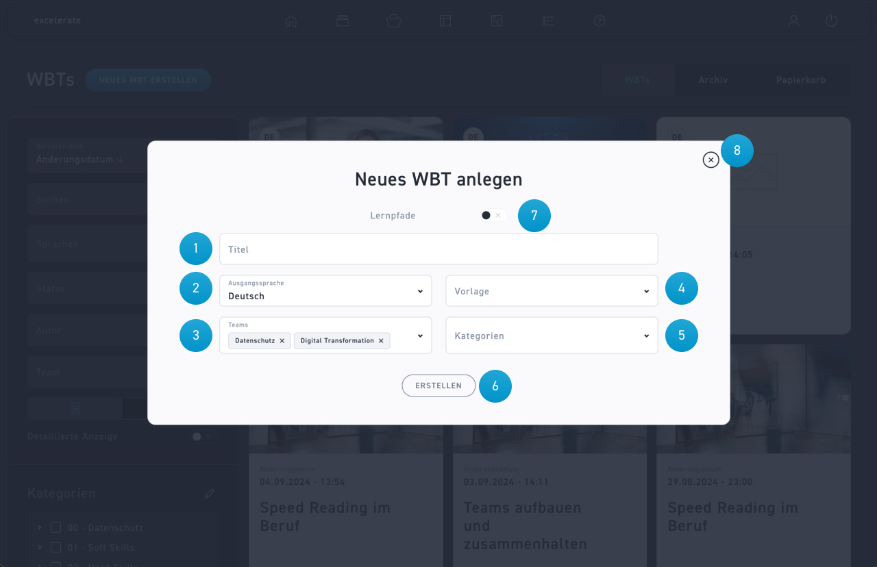 Klicke auf den Erstellen Button, um deine Eingaben zu bestätigen und ein WBT zu erstellen.